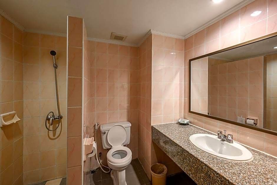 Deluxe Room is 420 square feet and includes either a double bed 131-150 width or 2 single beds 80-130 width plus extra beds on demand, desk, satellite tv , and hairdryer.